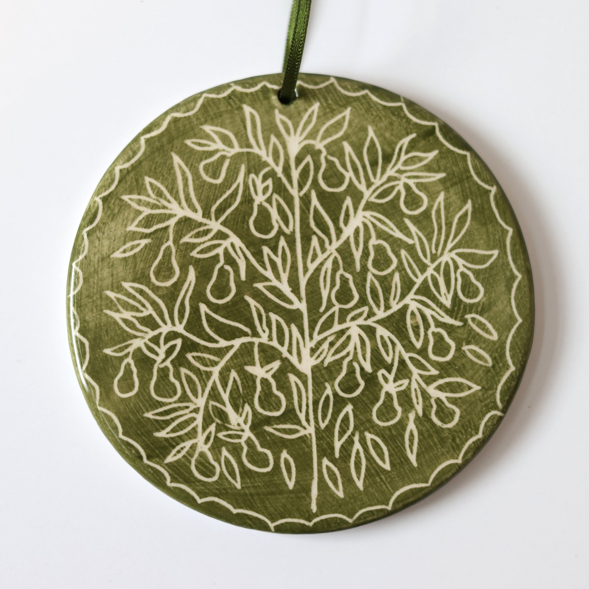 Available in both round and heart shapes, these pieces are designed as timeless keepsakes - perfect for hanging on a tree, gifting to a loved one, or displaying year-round. The glaze gives a subtle sheen while preserving the brushwork’s painterly character, and each is finished with a soft eco friendly recycled satin ribbon for hanging.
