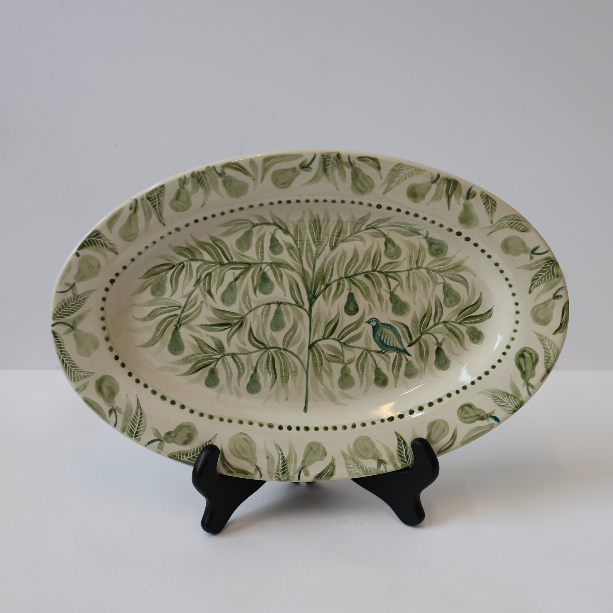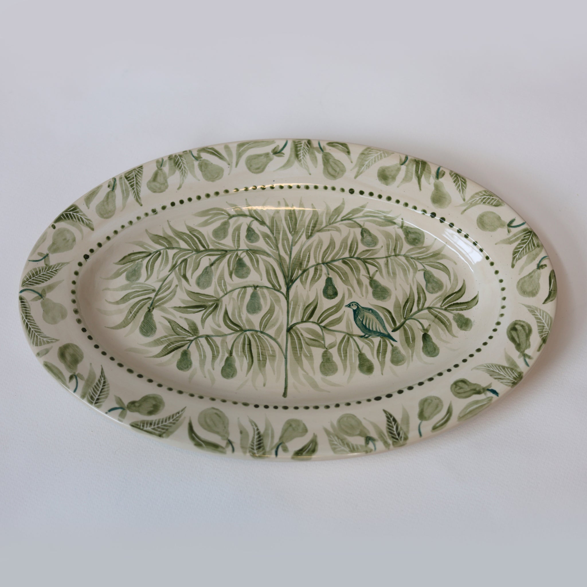 A classic design reimagined, this hand-painted platter features Rosanna’s signature Partridge in a Pear Tree motif – inspired by the beloved Christmas carol. Elegant green foliage and a softly detailed partridge create a timeless piece that feels festive yet understated.