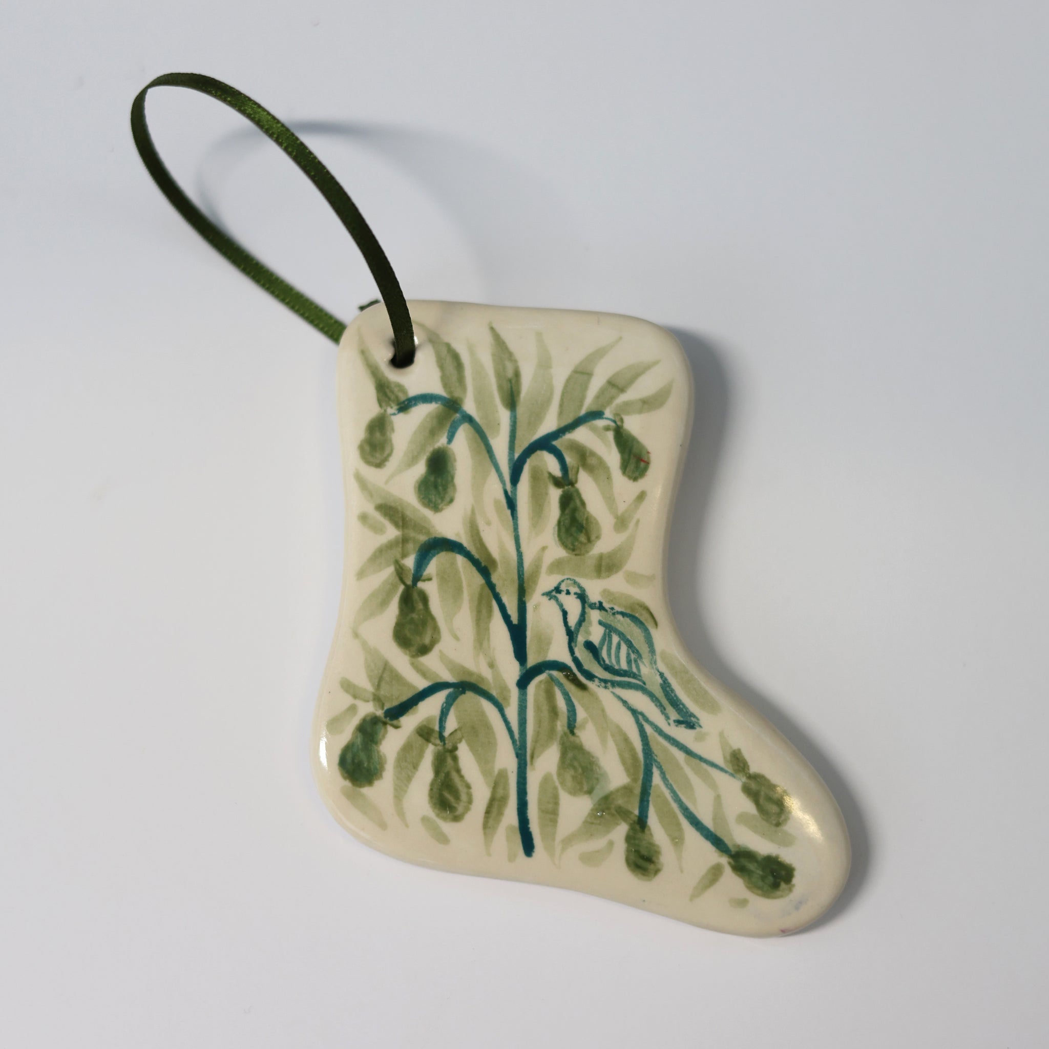 These pieces are designed as timeless keepsakes - perfect for hanging on a tree, gifting to a loved one, or displaying year-round. The glaze gives a subtle sheen while preserving the brushwork’s painterly character, and each is finished with a soft eco friendly recycled satin ribbon for hanging.