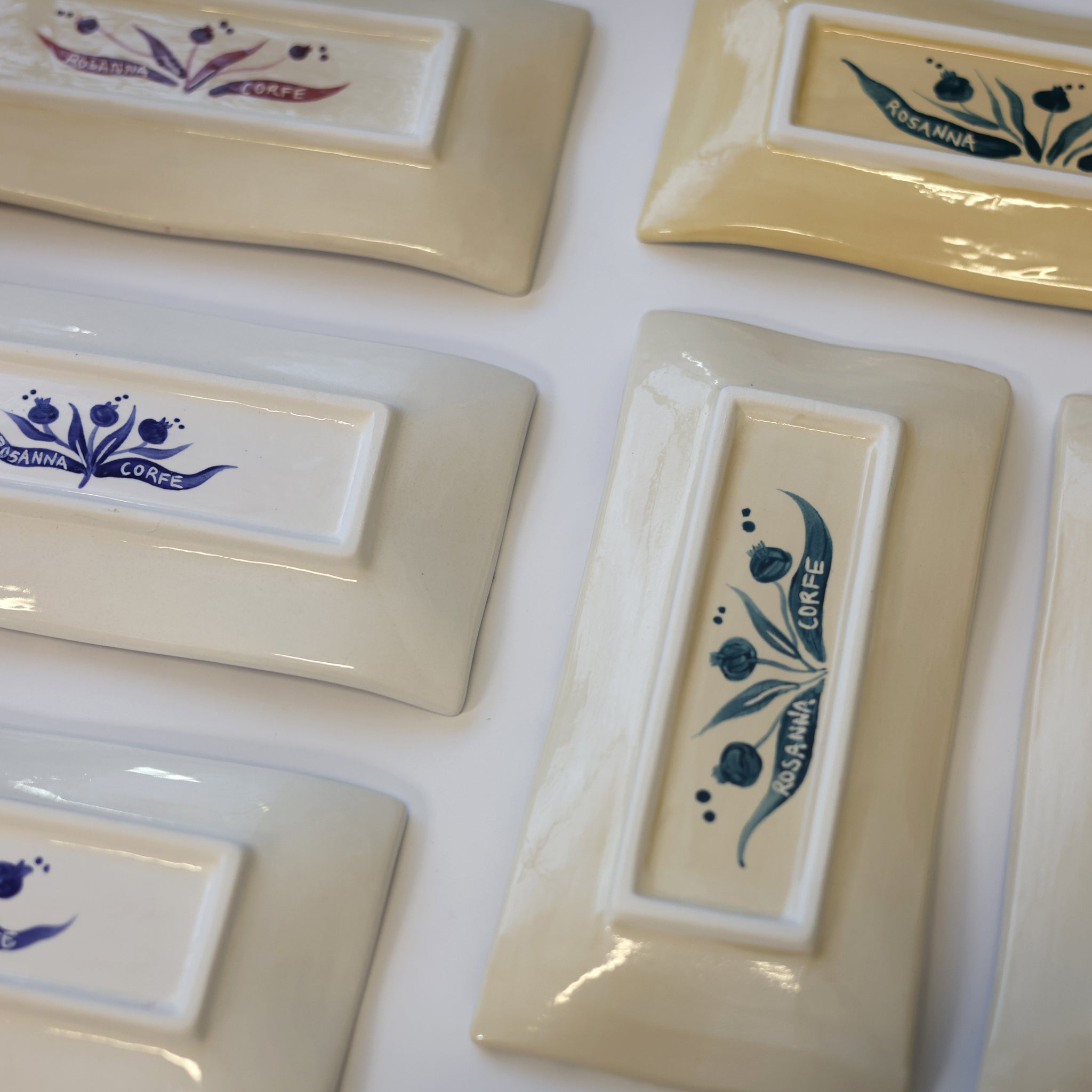 Hand painted by Rosanna Corfe in London and featuring her popular Pomegranate patterns, these wavy edged trinket dishes can be used as a side plate, decoratively or to hold your favourite jewellery.