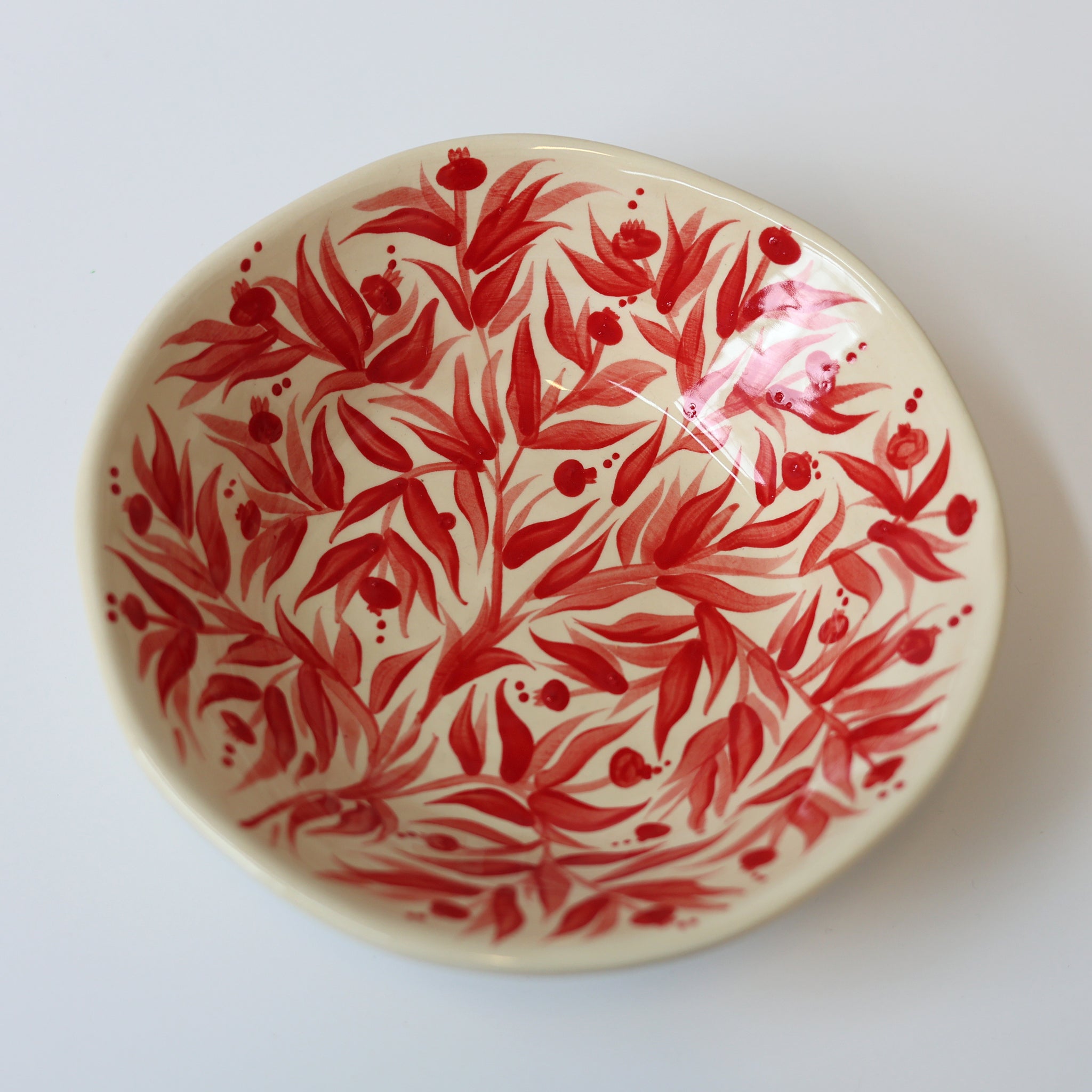 Featuring an intricately hand-painted pomegranate design in a bright red colour palette. Each piece in this collection is completely unique, ensuring no two are ever the same, making it a standout addition to your home.